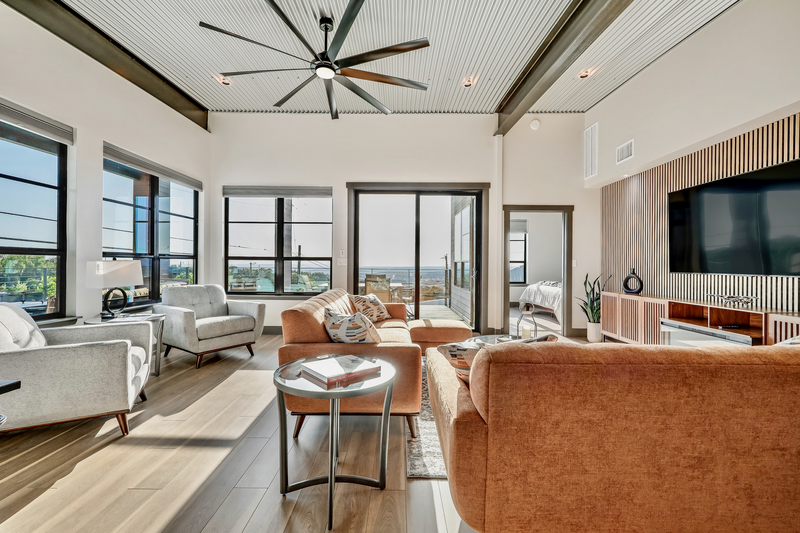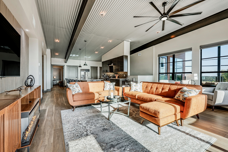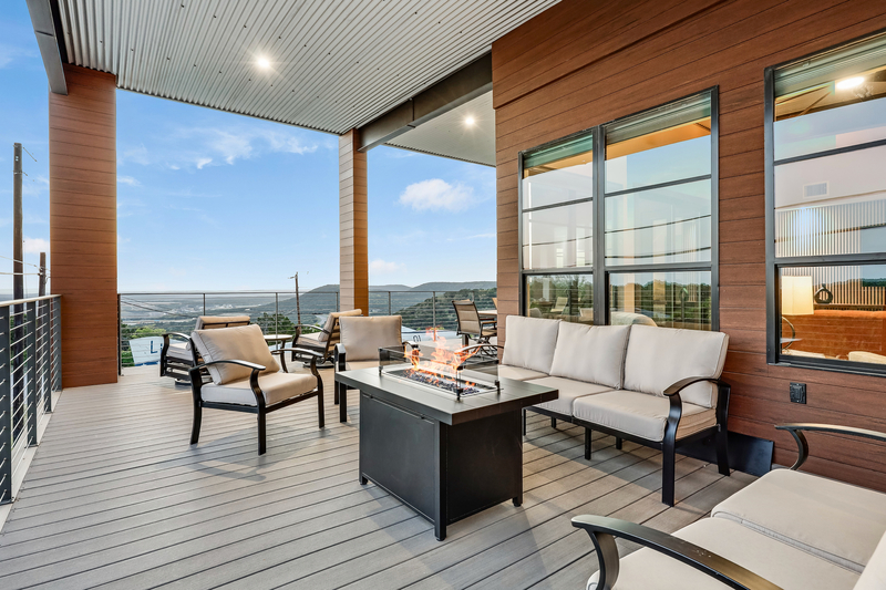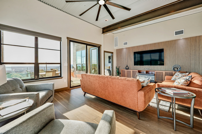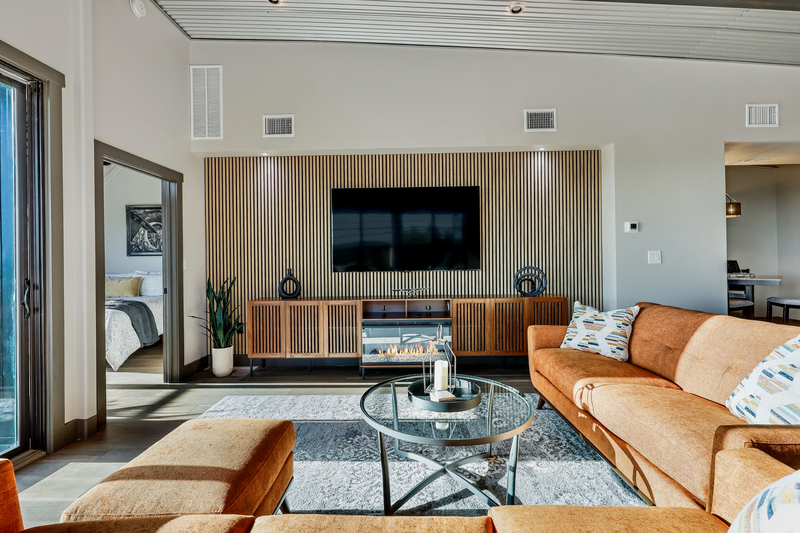 kitchen, and living rooms. Step outside the sliding door to the largest covered outdoor deck at KRYW complete with expansive dining and lounging options and a grill ready to cook up a feast for