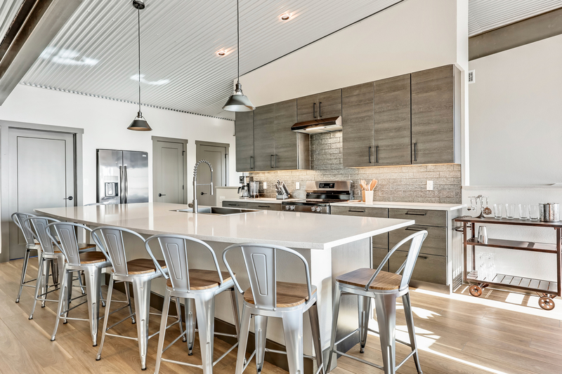 Inside, the well-stocked kitchen is stylish and offers counter seating for eight, designer finishes and all new appliances.