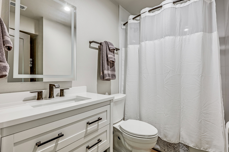 Two bedrooms offers ensuite 3/4 bathrooms with walk-in showers. The second bedroom offers a full bathroom with tub that is shared with the hall/kitchen.